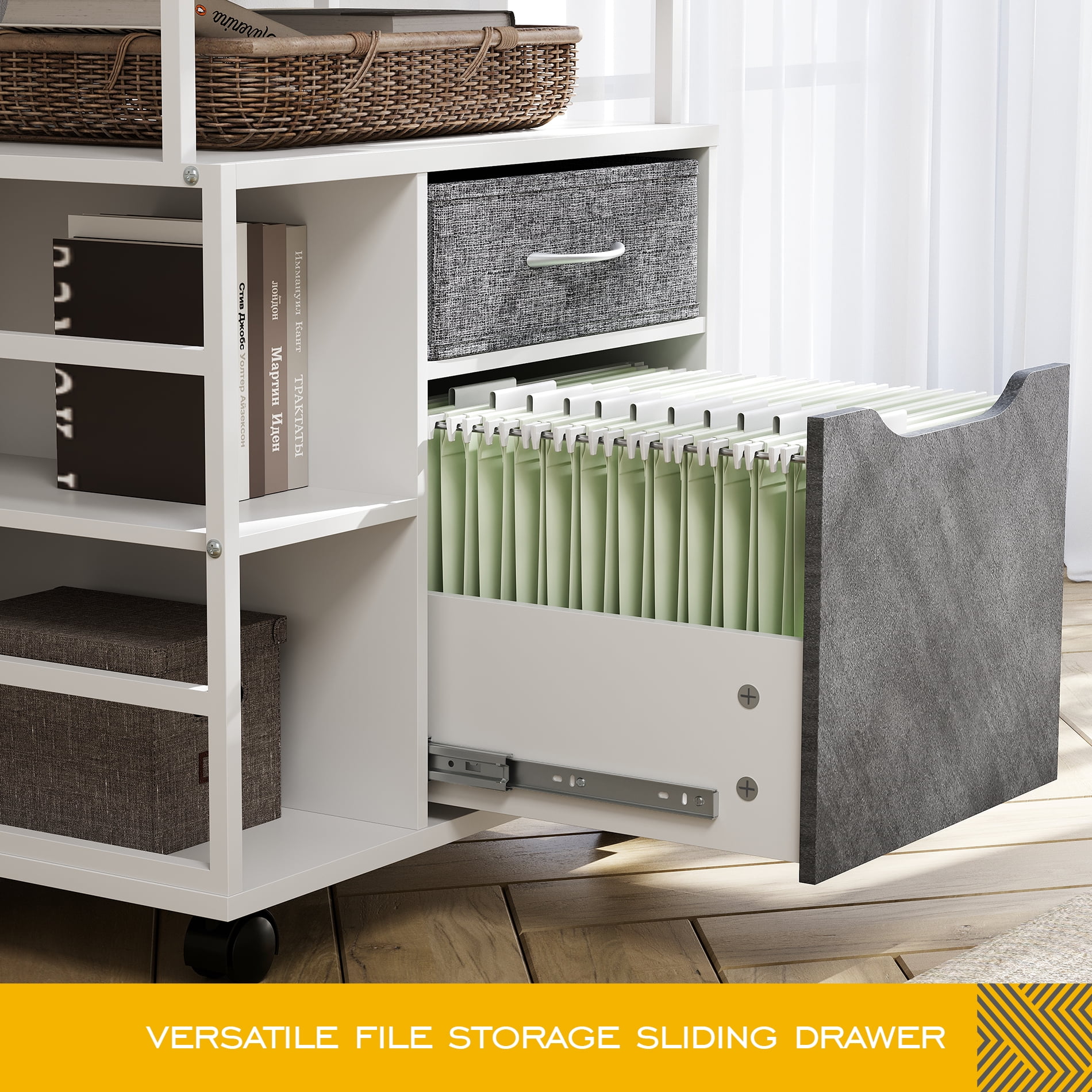 Mobile Printer Stand With Open Shelves And Sliding Filing Drawers Wood And Metal White Grey Walmart Com